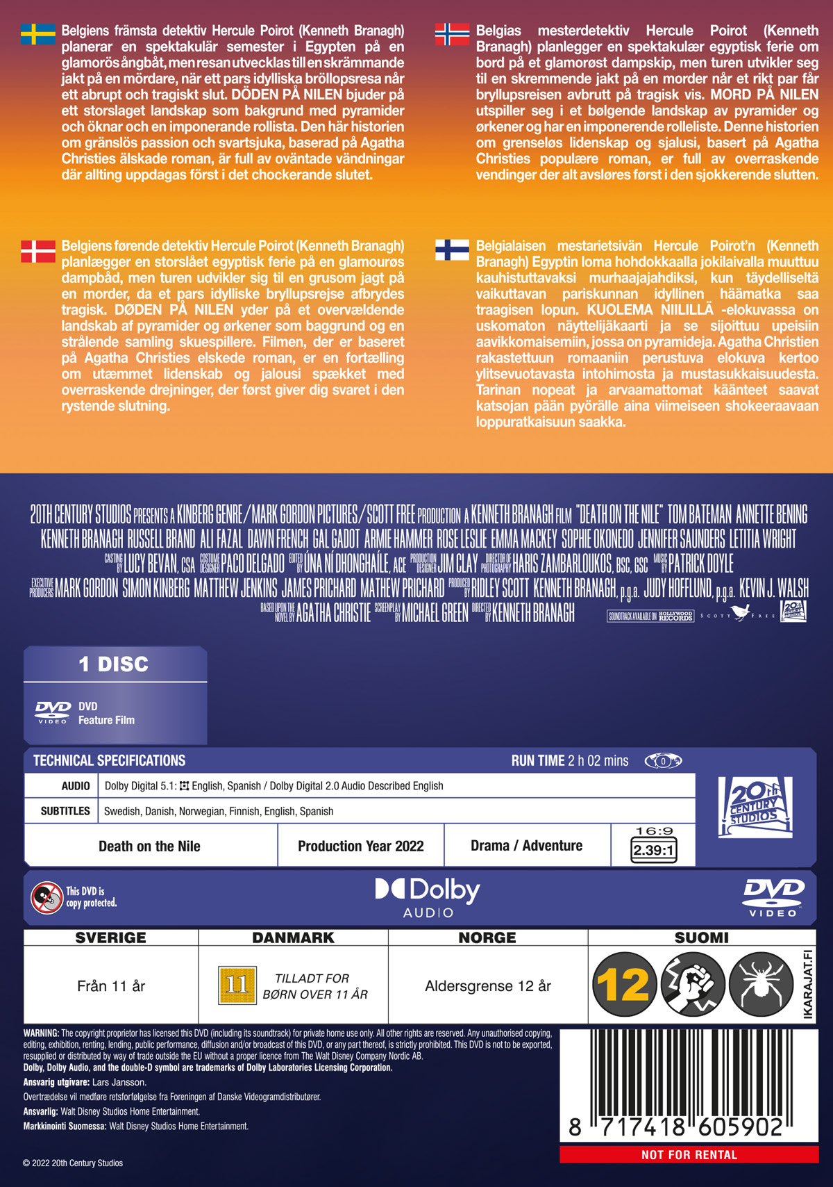 Movie - Death On The Nile (2022)-Dvd ryhmässä Elokuva / Elokuva DVD / Crime @ Bengans Skivbutik AB (5662043)