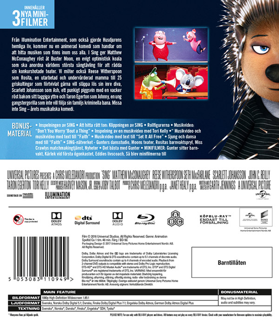 Movie - Sing Bd S-T ryhmässä Elokuva / Film Blu-ray / Animation @ Bengans Skivbutik AB (5661251)